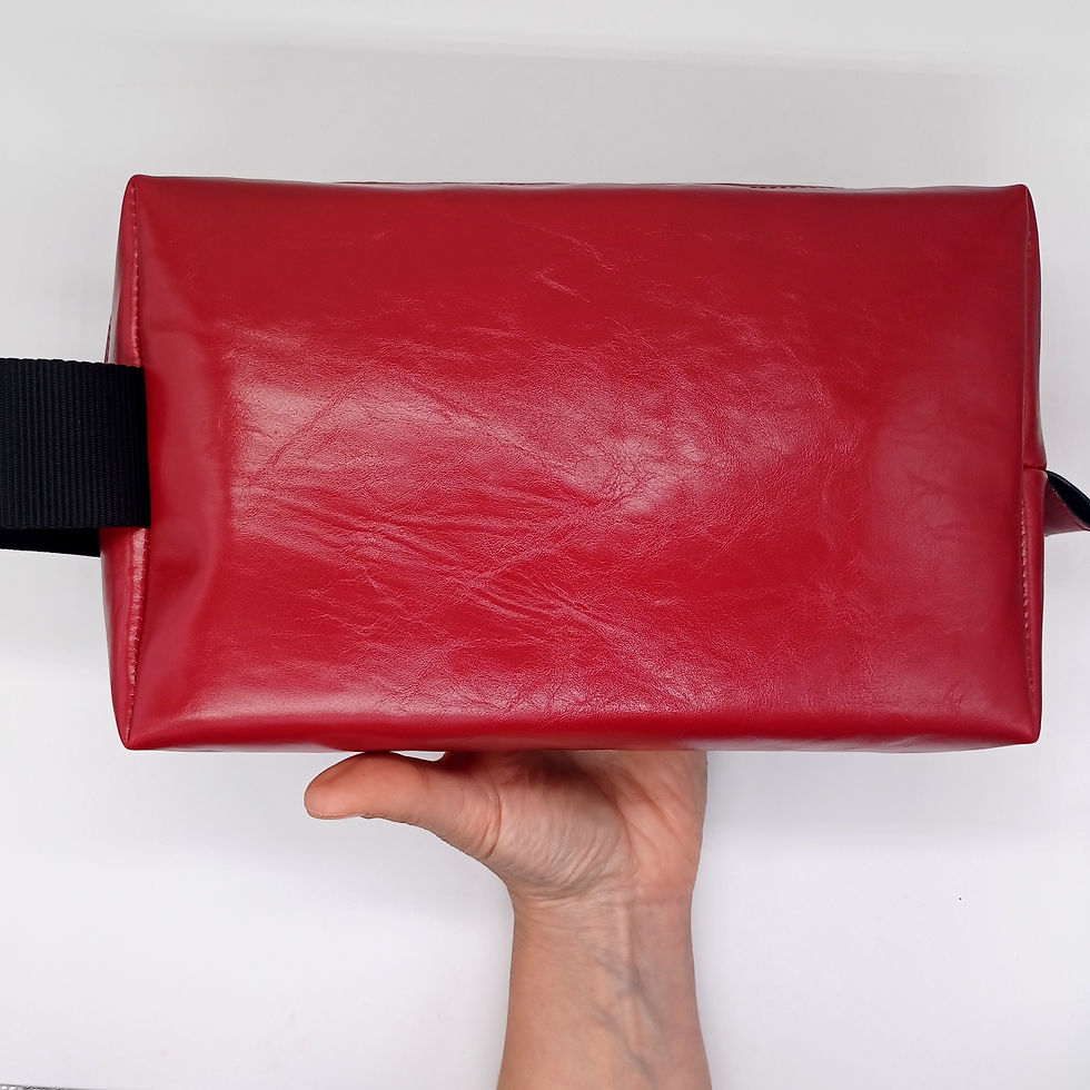 Chaque maroquinerie est unique et disponible en quatre coloris: bleu roi, rouge vif, vert émeraude et marron. Les pochettes, les étuis, les trousses et les sacs sont faits main par Alice, en cuir de luxe, issu de stock dormant provenant de France ou d'Italie.